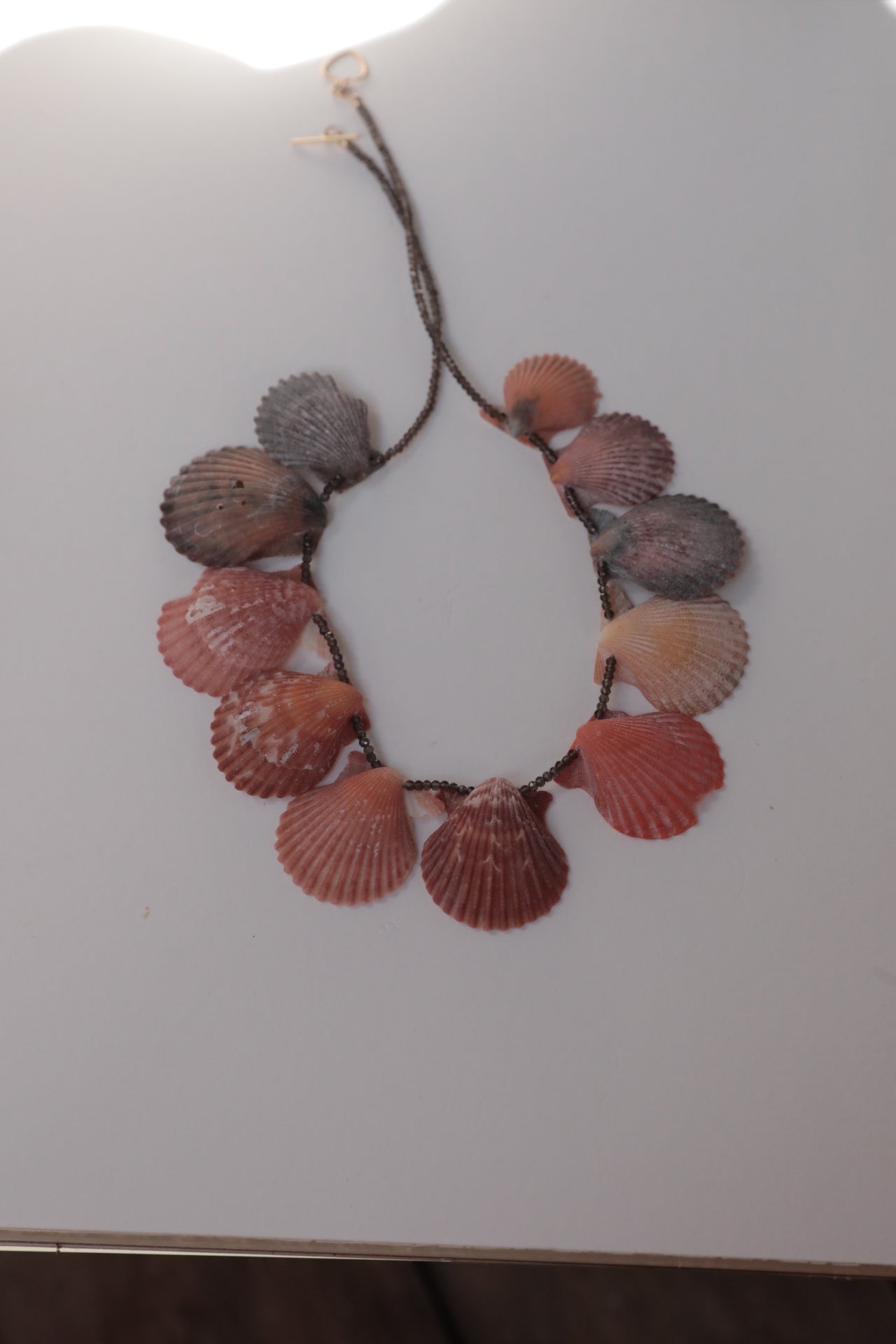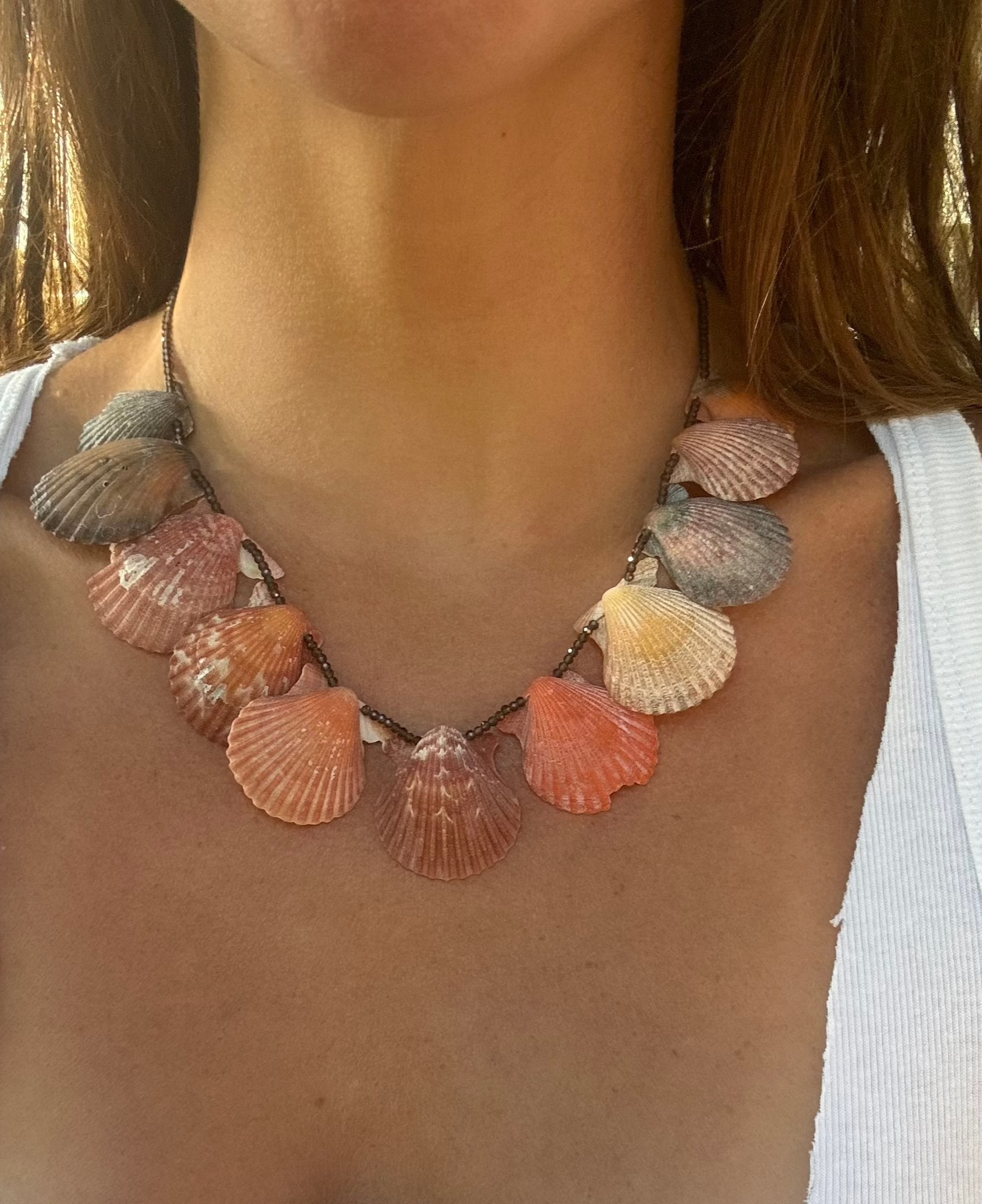 multiple imperfect and beautiful scallop shells of all colors paired with smoky topaz